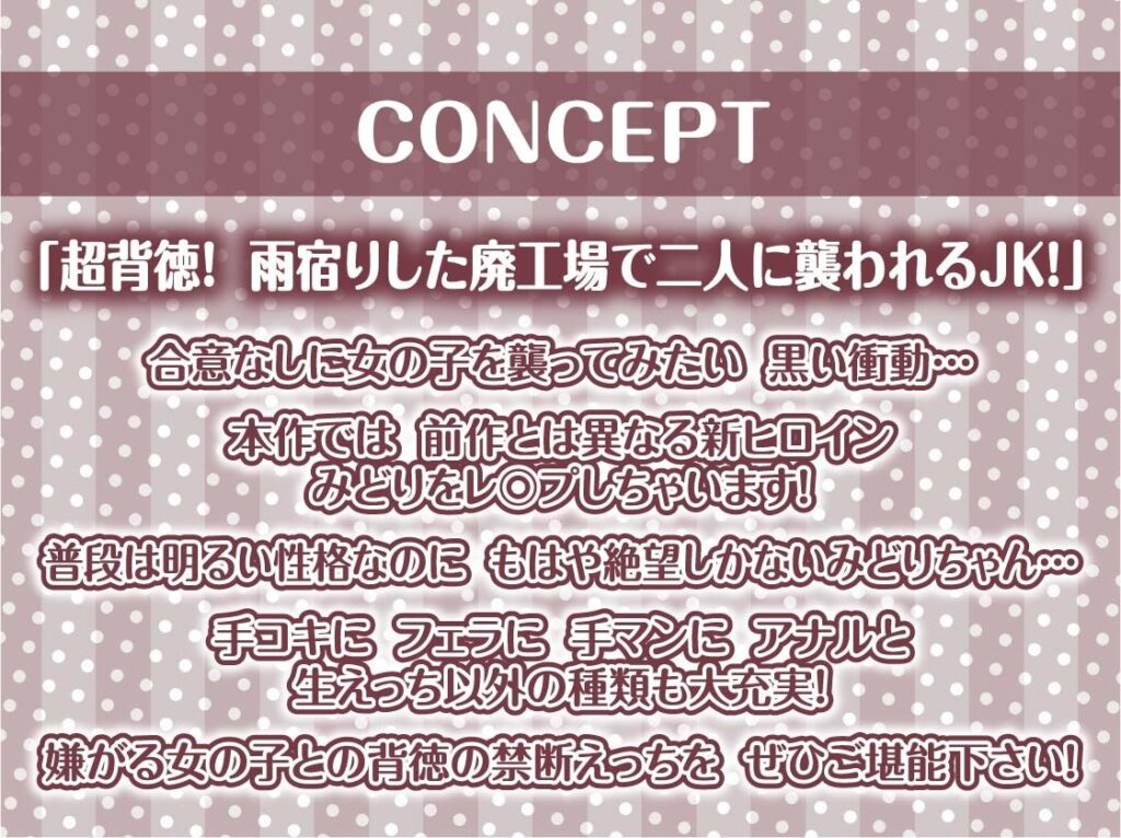 今すぐ読む!(最大99%OFFクーポン)完全版を今すぐ読む!(最大99%OFFクーポン)雨濡れJKレ〇プ2【フォーリーサウンド】発売日: 2025年5月6日ボリューム: 7本 (約107分)+α通常価格: 2,200円販売価格: 1,100円ジャンル: 中出し、フェラ、アナル、退廃・背徳... -