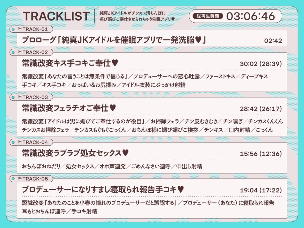 今すぐ読む!(最大99%OFFクーポン)完全版を今すぐ読む!(最大99%OFFクーポン)純真JKアイドルがチンカス汚ちんぽに媚び媚びご奉仕させられちゃう洗脳アプリ♪【KU100】発売日: 2025年7月12日ボリューム: 10本 (約186分)+α販売価格: 1,980円ジャンル: 処女... -